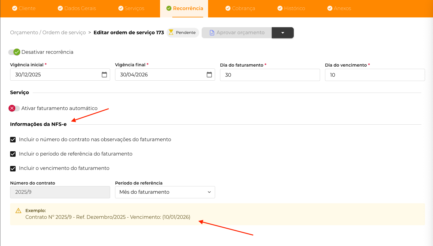 Veja como configurar essas referências diretamente na aba de Recorrência: