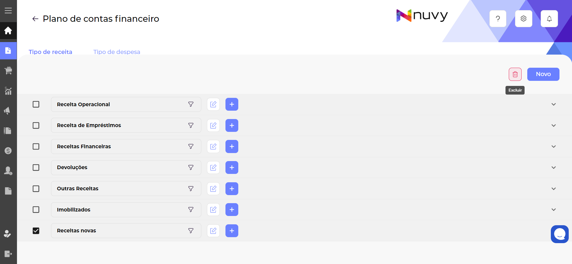 Atualizando o plano de contas financeiro