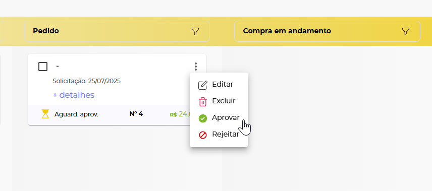 Pata autorizar a compra é necessário que o usuário com permissão aprove o pedido.