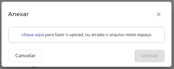 Ao clicar no botão Anexar, basta clicar em "Clique aqui" ou arrastar os arquivos que serão anexados para a área pontilhada.