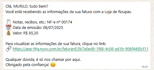 Ao ativar essa integração, você deixa a comunicação com seu cliente muito mais ágil, direta e personalizada, usando um canal que ele já confia e acessa sempre que precisa.