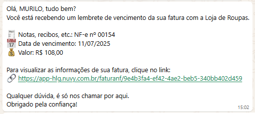 Como essa mensagem chega para o seu cliente?
