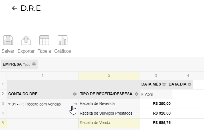 Porém é possível clicar em suas linhas para expandir e ver em maior detalhes a categorização do relatório.