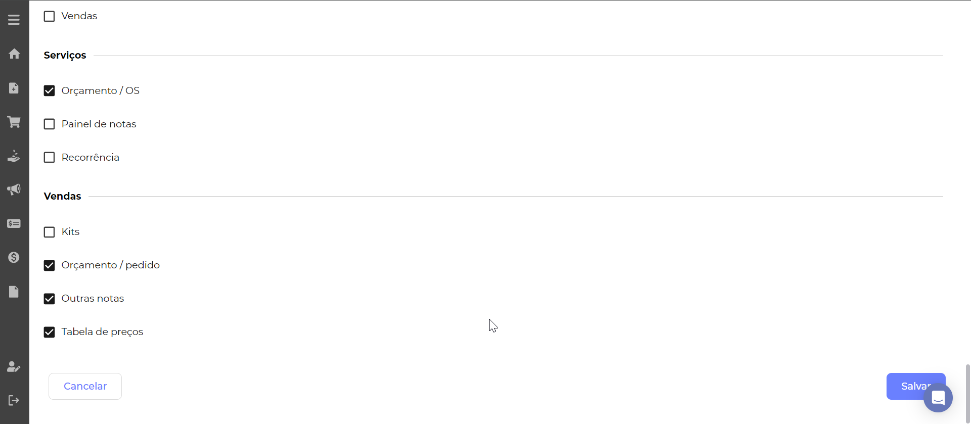 Aqui você vai ter acesso a uma lista de todas as funcionalidades do Nuvy ERP, separadas seções para cada módulo do sistema.
