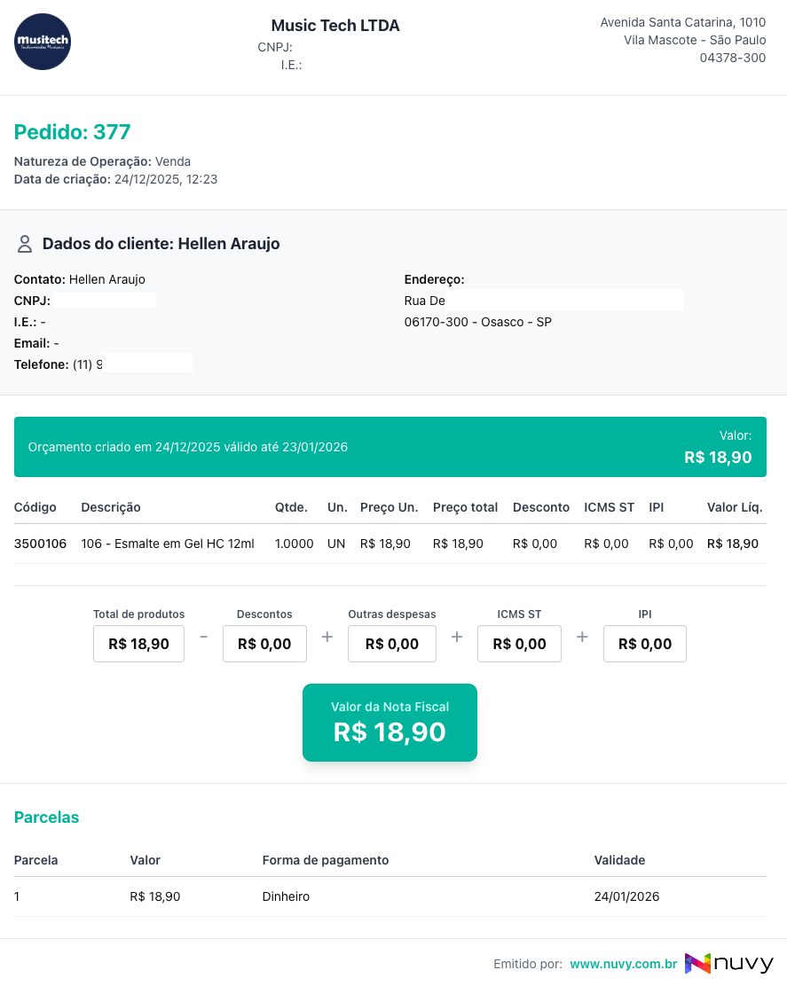 No Nuvy ERP, localize o Orçamento ou Pedido que deseja enviar para seu cliente no módulo Vendas: