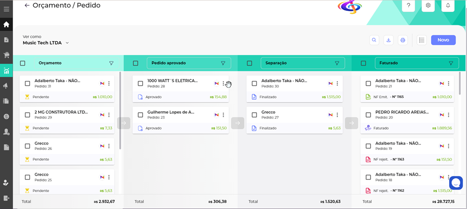 Quando chegar o momento de emitir a nota fiscal do seu pedido, o Nuvy ERP disponibiliza dois caminhos para sua operação, pelo kanban ou lista (dependendo da sua visualização de preferência).