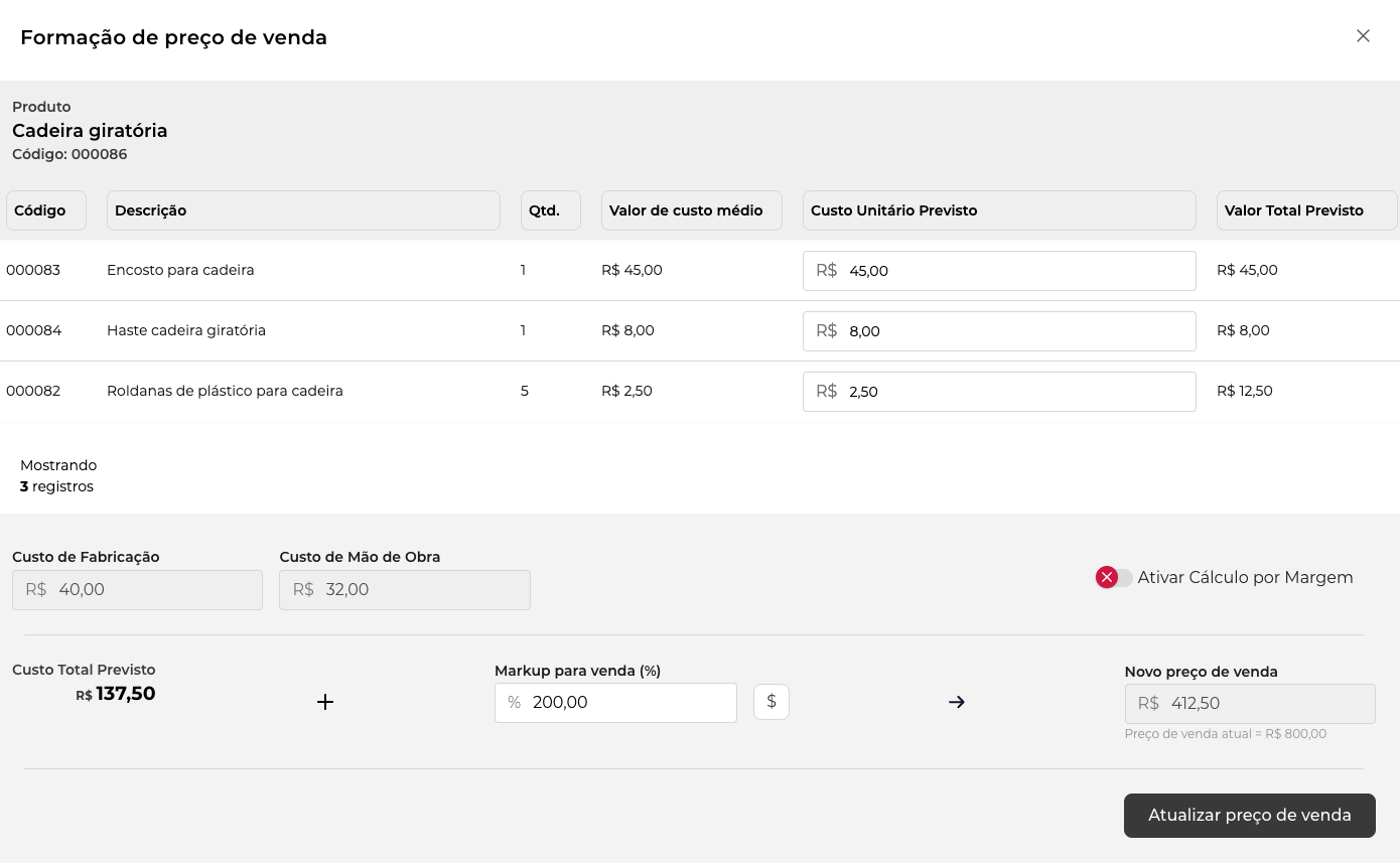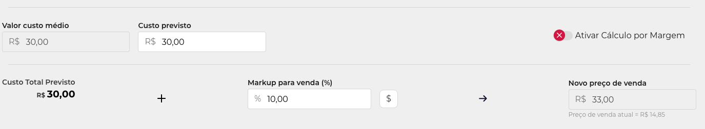 a. Cálculo por Markup (Chave Desativada ❌)