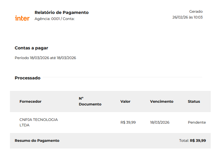 Importante: O pagamento só será realizado após o aprovador master da conta bancária autorizar a transação no ambiente do banco.
