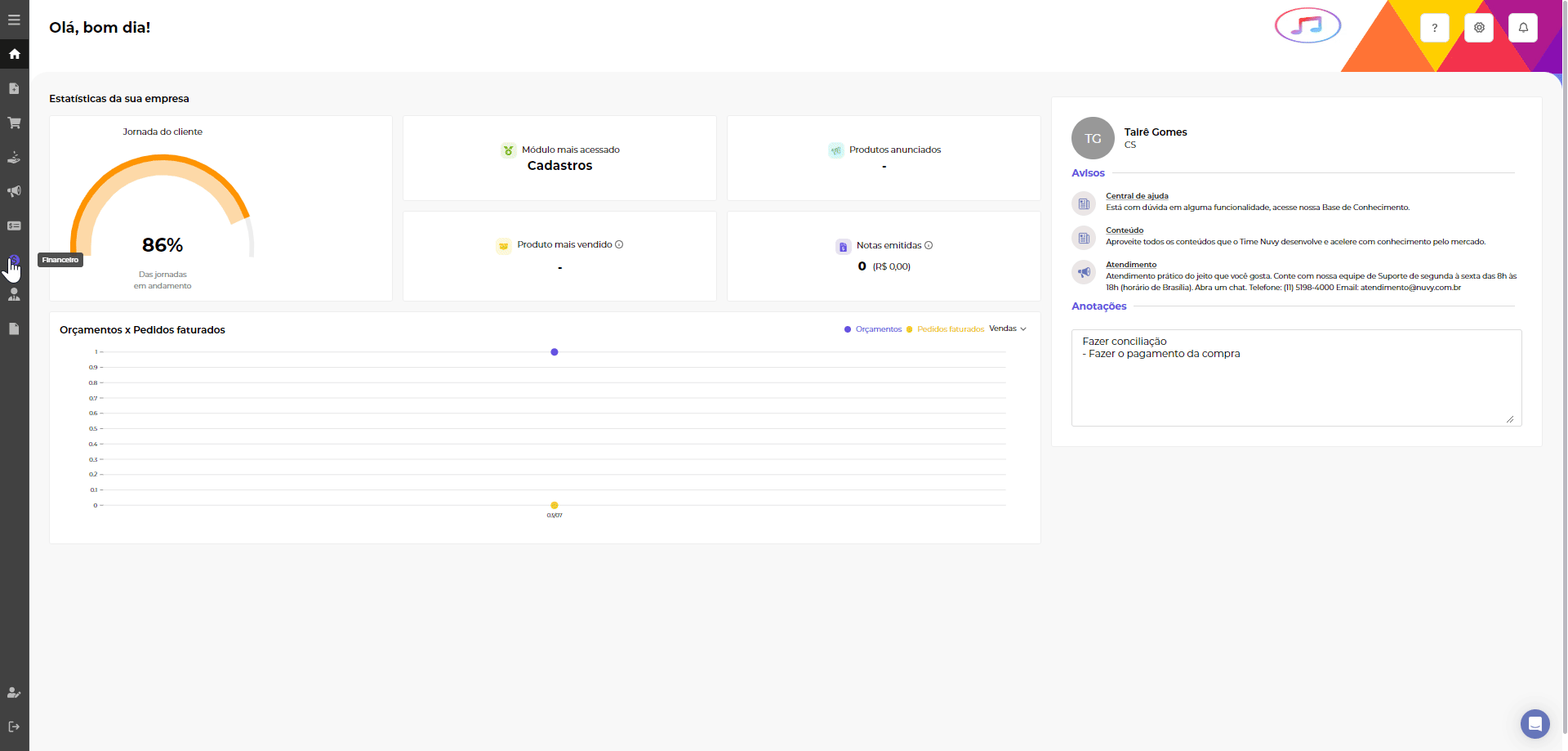 Para visualizar as cobranças disparadas pelo Nuvy, basta acessar o módulo Financeiro > Cobranças enviadas: