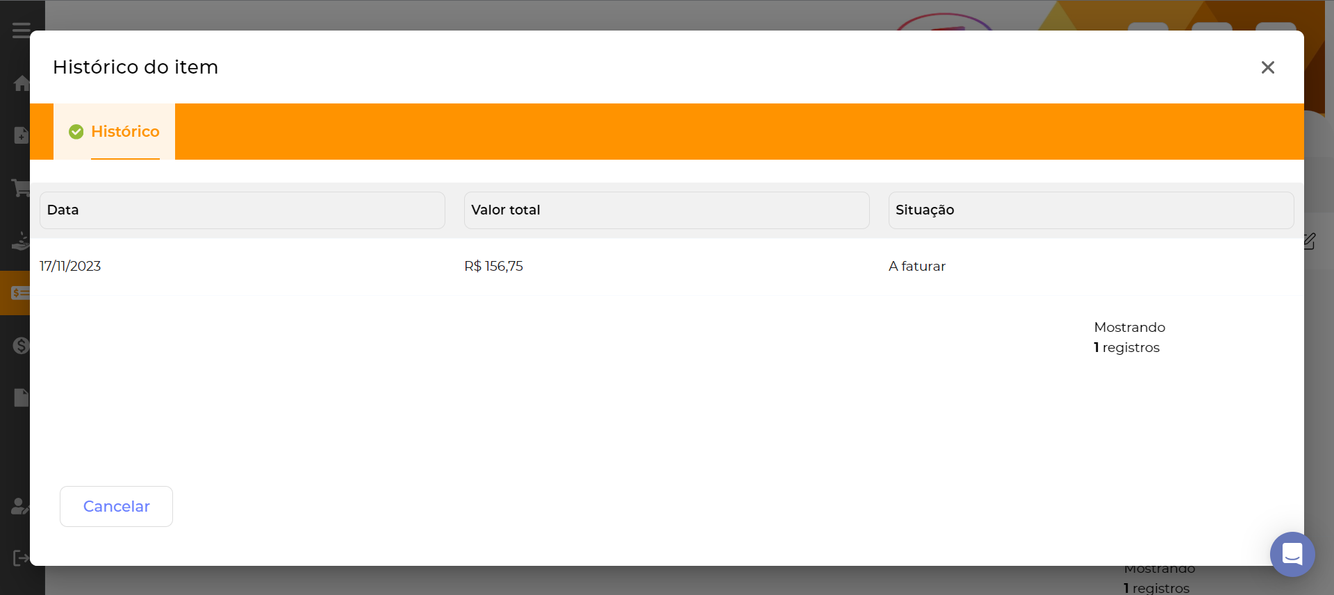 Acessando o módulo de Serviços > Recorrência > Visualizar histórico.