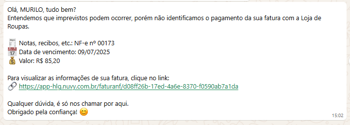 Como essa mensagem chega para o seu cliente?