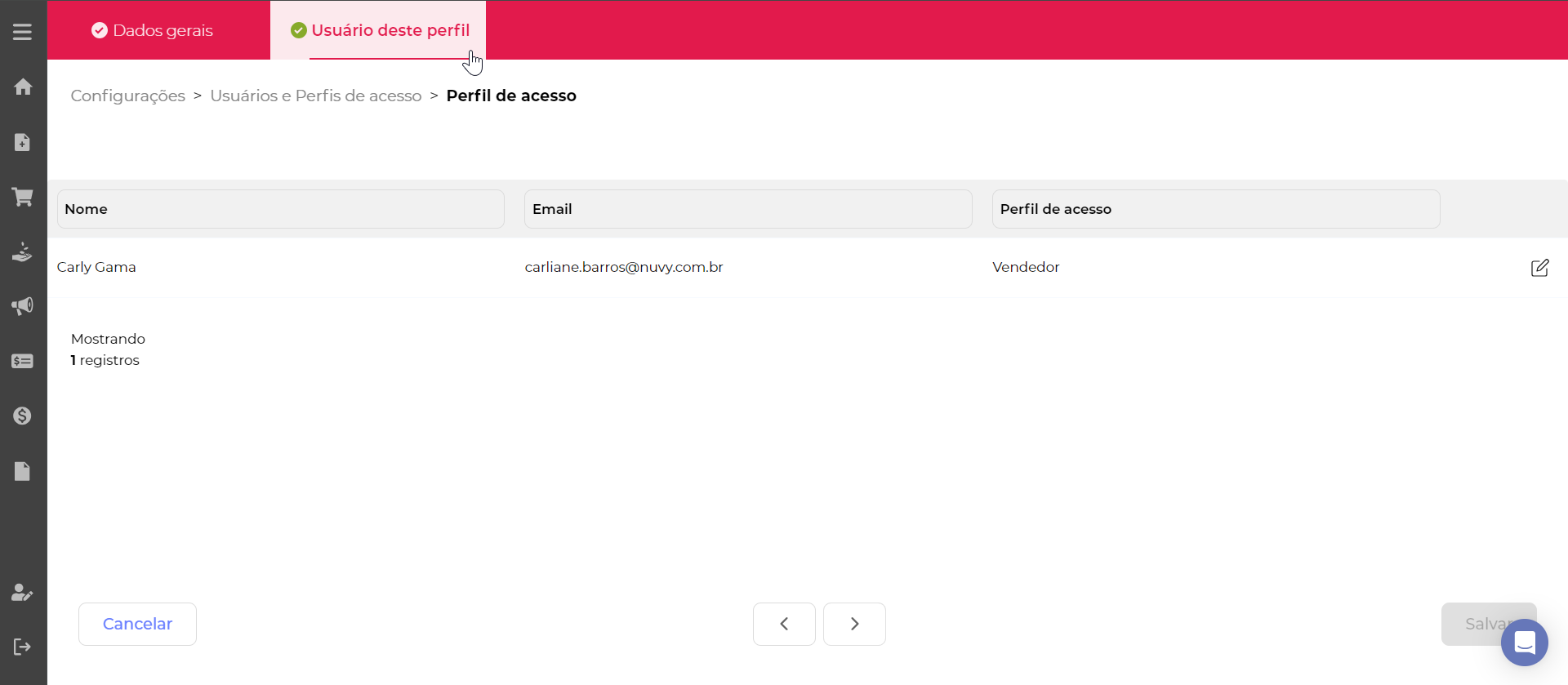 Além da aba Dados Gerais, na tela de edição você verá uma nova aba, Usuários deste perfil: