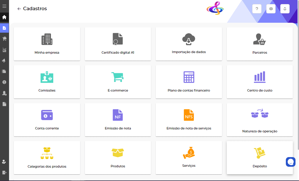 Nota Ao cadastrar sua empresa no sistema, um depósito padrão já é criado. |