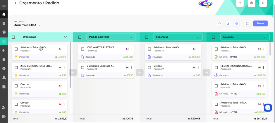 Quando chegar o momento de emitir a nota fiscal do seu pedido, o Nuvy ERP disponibiliza dois caminhos para sua operação, pelo kanban ou lista (dependendo da sua visualização de preferência).